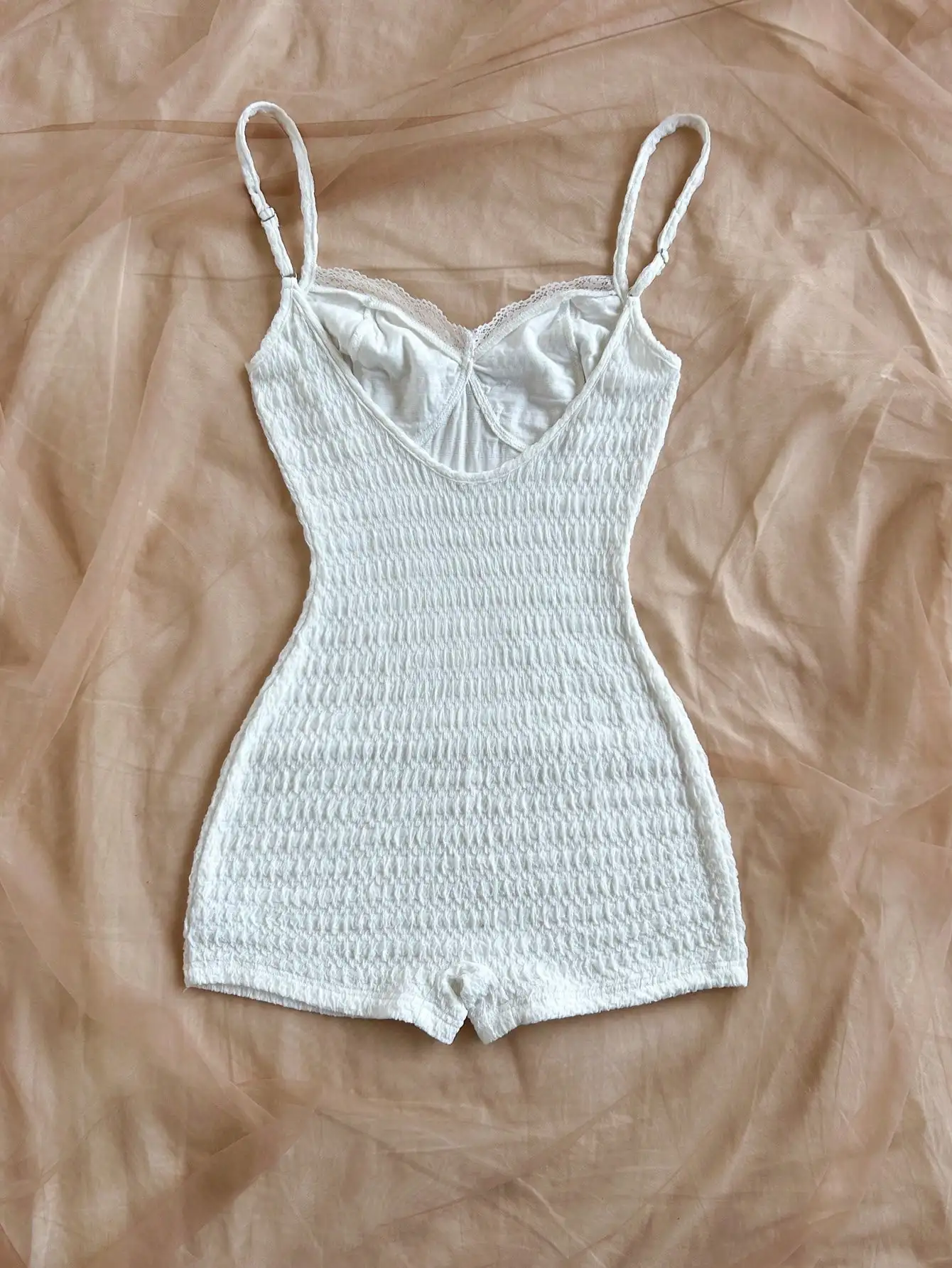 2025 New sexy Spice bodysuit solid color lace edge bow halter jumpsuit bag hip shorts women's swimsuit