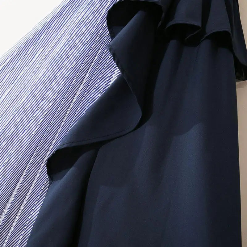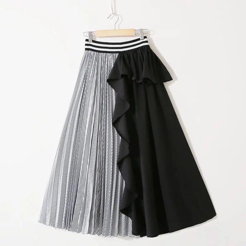Fashion New Spring Women's Elastic Waist Striped Contrast Color Patchwork Irregular Flounce Pleated High Waist A-line Skirts