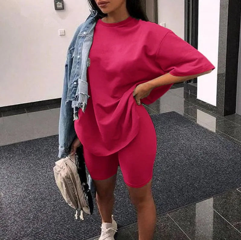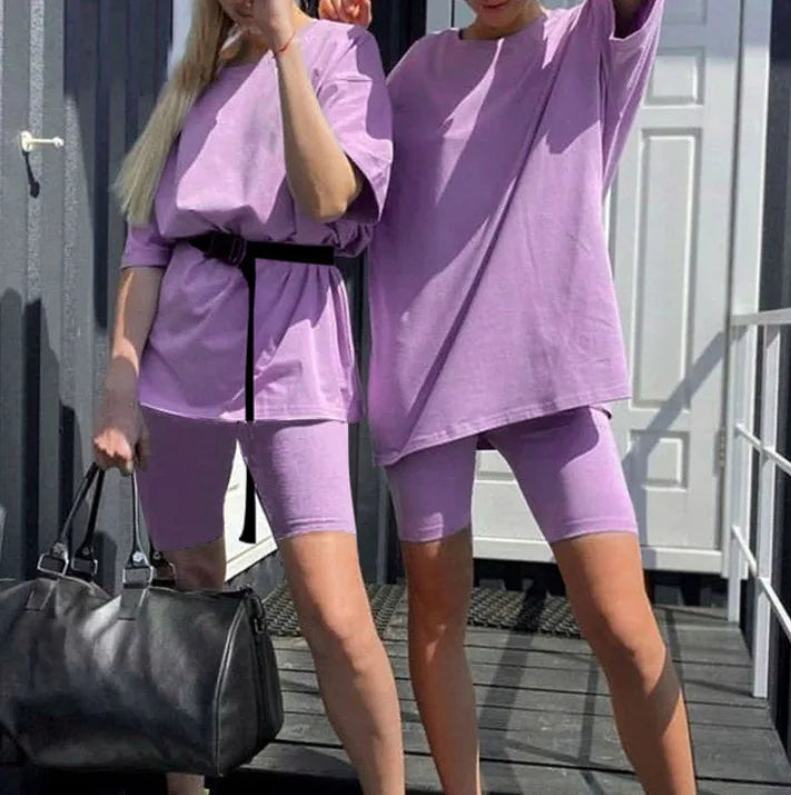 Women Half Sleeve T-shirt Top Shorts Belt Homewear Two Pieces Suit Leisure Set Bodycon Shorts Bottom Suit Two Piece Sets Outfit